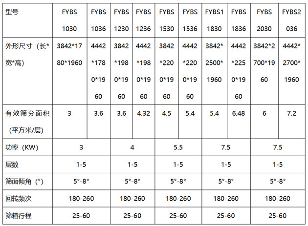 FYBS-1方形搖擺篩技術(shù)參數(shù):