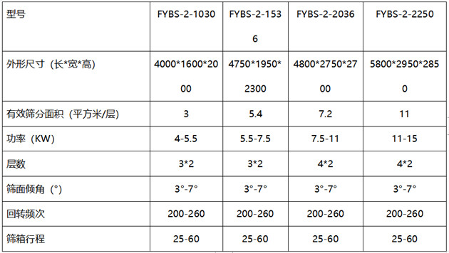FYBS-2復(fù)式方形搖擺篩技術(shù)參數(shù):